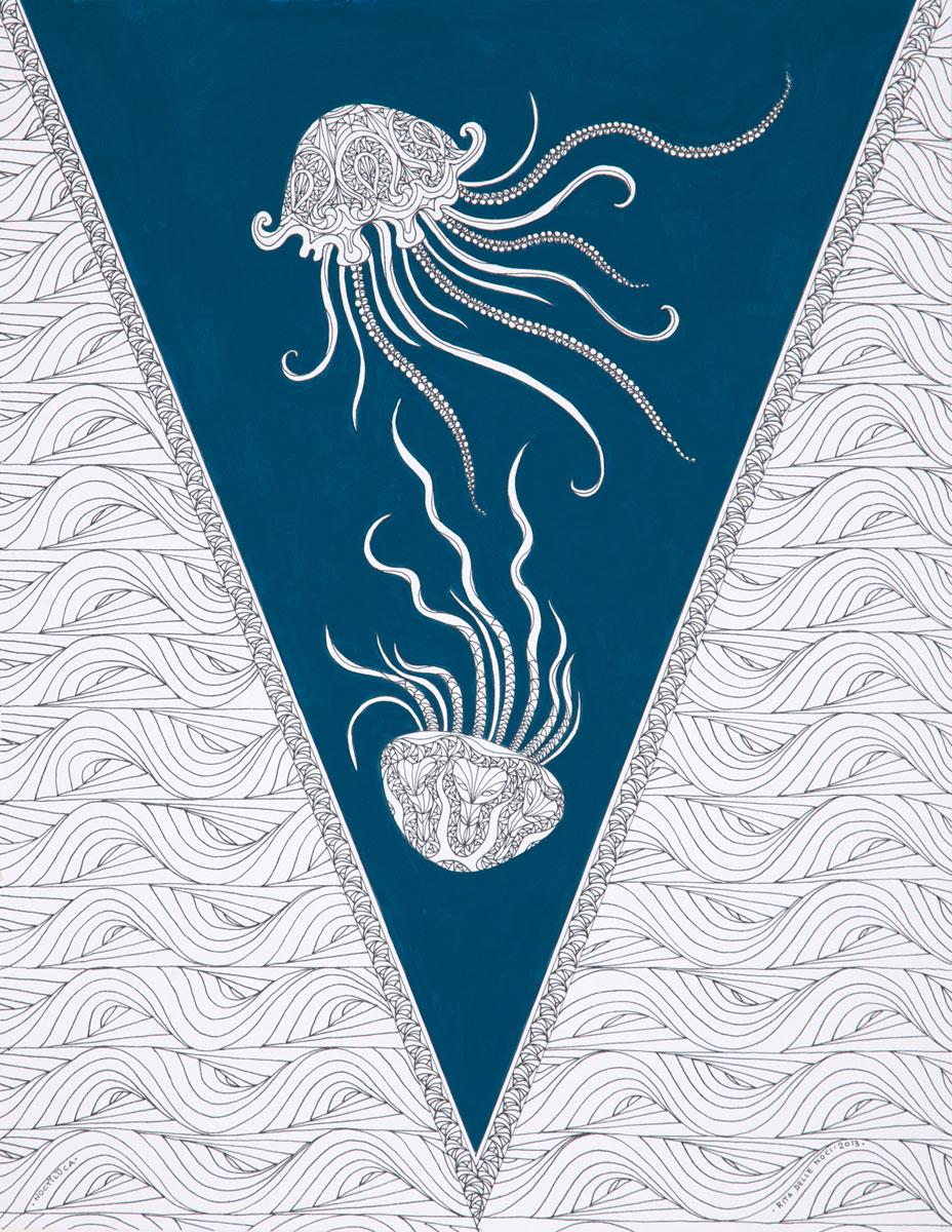 Allora ecco che c’è una mano libera, sì, ma che rimane a suo modo implacabile, che detta il senso non di un’ossessione (come spesso accade in tanta parte dell’arte del Novecento) ma piuttosto di una consapevole vertigine che pervade le opere e che sembra trovare scioglimento solo nella perfetta esecuzione dell’ordito di moduli che le compongono: la china diviene allora un bisturi, esatto e perfetto nella sua algida capacità, ma ciò non riesce né vuole nascondere la passione latente, magmatica, che agisce sottotraccia e che rinviene sé stessa proprio nella sua sublimazione attraverso la regolarità del segno e la fitta tramatura. La modularità utilizzata come grimaldello delle tensioni; le immagini lievi e suggestive; il linguaggio ora sacro ed ora misterioso, arcano; la linea che detta allo sguardo sentieri che portano là dove l’Artista desidera condurci; le figurazioni umane che talvolta rievocano alcuni stilemi dell’Art Nouveau; tutto ciò concorre alla creazione di un mood, di una condizione di turbinosa sospensione, di un sapiente gioco di rimandi ed allusioni che raccontano il dialogo perpetuo fra mito e modernità, tra incubazione della grande dottrina antica e l’atto di subcreazione che è proprio dell’Artista autentico che in sé e nella sua opera rigenera e riplasma il senso del Divino.