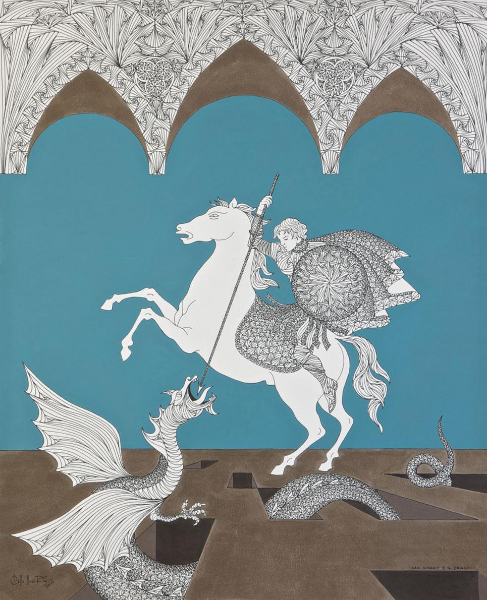 E così i lavori, le grafiche, i rosoni, le icone, le architetture sono quadrature o curvature dell’impossibile, un itinerario che trova l’ordine del suo farsi nell’accumulazione infinitamente paziente del segno, pur se annunciata come rapida (e accurata) esecuzione temporale. E all’astante viene il dubbio che la creazione espressiva – così particolare – di quest’artista sia una rappresentazione della realtà che si oppone al suo contenuto. Infatti, non ha senso trattare come se fosse grafica la tecnica a cui si affidano queste opere per realizzarsi, pur se la loro immagine è bidimensionale, fondata (o ancorata) sulla prospettiva, estratta da una frammentazione dello spazio (con volontà di insidiare anche il tempo) che sembra presumere definizioni proprie dell’astrazione.