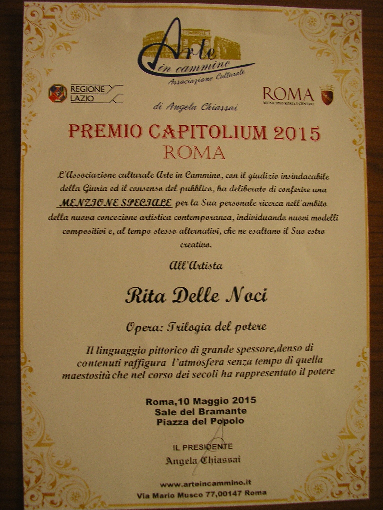 L'Artista partecipa a questa importante rassegna romana, patrocinata dall'Associazione culturale "Arte in cammino", che si è tenuta nelle Sale del Bramante, a Piazza del Popolo, con l'opera "Trittico del Potere"